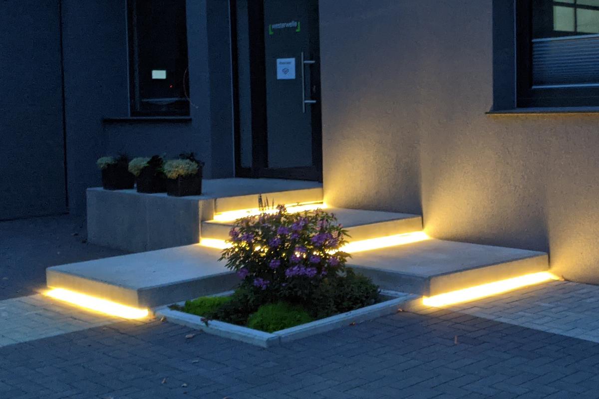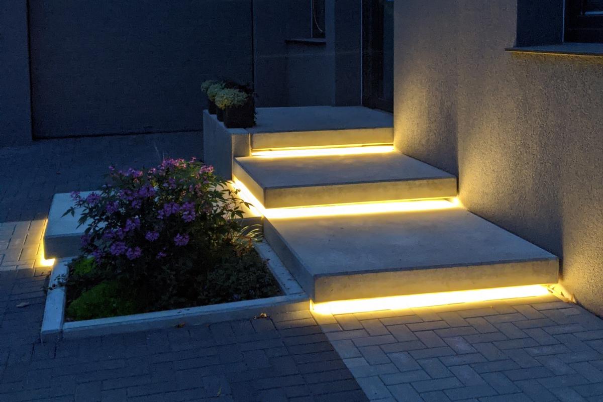 Zamontowane lampki zapewniają oświetlenie o zmierzchu lub w nocy, aby rozjaśniać np. ścieżki i schody. Oświetlenie nie tylko zwiększa bezpieczeństwo, ale także wyróżnia się nowoczesną stylistyką. Iluminacje świetlne podkreślają wysoką jakość i są mocnym dodatkiem elementów betonowych.