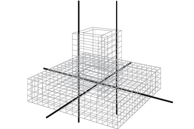 Statisch individuell gerechneter Bewehrungskörper aus Betonstabstahl/Betonstahlmatten B 500 A/B mit allseitiger Betonüberdeckung gem. DIN EN 1992-1-1 unter Berücksichtigung der benötigten Expositionsklassen.