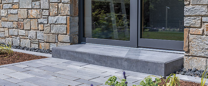 Podeste eignen sich besonders gut für den Eingangsbereich aber auch für den Gartenbau. Sie ergänzen jeden Haus- und Terrasseneingang und stellen ein dekoratives Highlight dar! Besonders gut kombinierbar sind sie mit Betonplatten und Blockstufen. Aber auch als einzelne Elemente setzen sie Ihre Eingangsbereiche oder Ihren Garten in Szene.